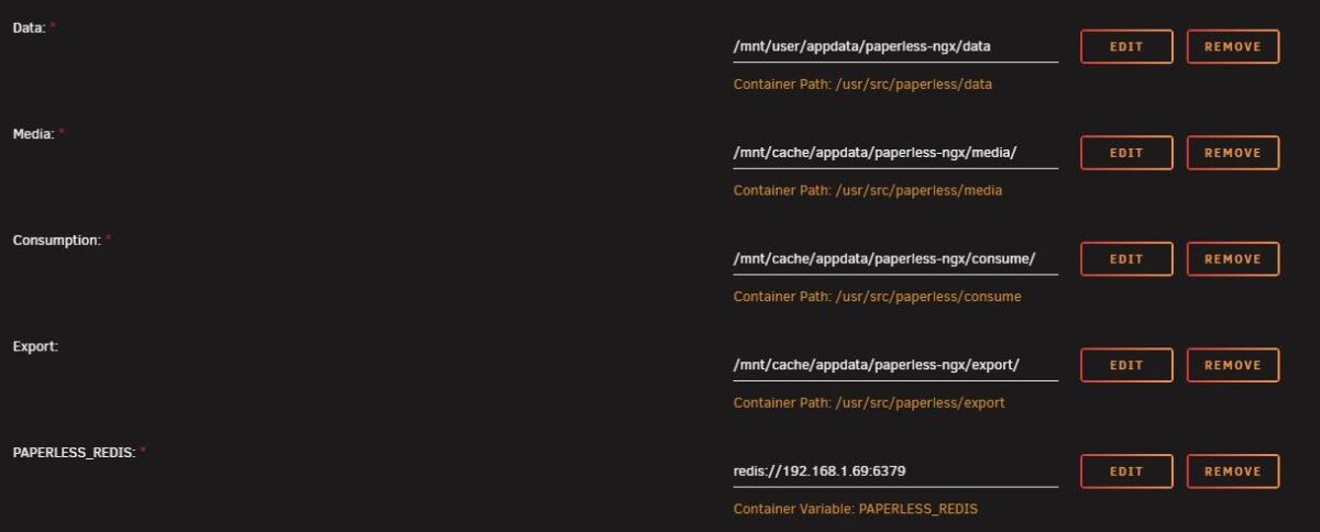 paperless-ngxfolder inside yourappdatadirectory on the cache pool. - Redis Configuration: You’ll need to link Paperless-ngx to Redis. Under the