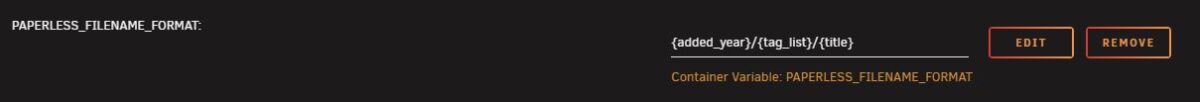 PAPERLESS_REDISoption, enter the address for Redis in this format:redis://[your_unraid_ip]:6379. Replace[your_unraid_ip]with the IP address of your Unraid server. - Filename Format: To keep your files organized, I suggest using a structured format like